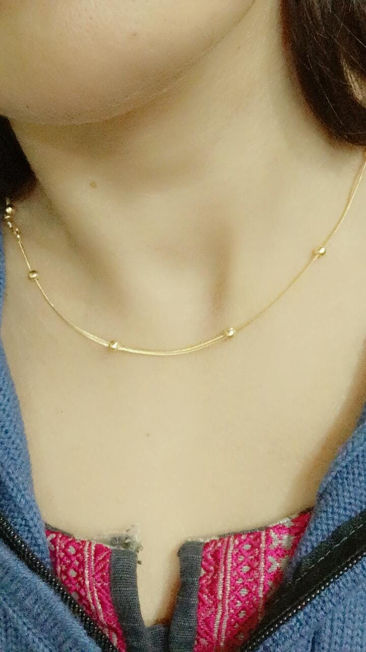 The Minimalist Golden Satellite Chain is the epitome of subtle, modern elegance. This is why it is crafted from polished Stainless Steel with a beautiful golden finish. The design features a delicate, smooth chain with small, fixed beads (satellites) evenly spaced along the entire length. As a result, it creates a luminous, liquid-like drape on the neckline.